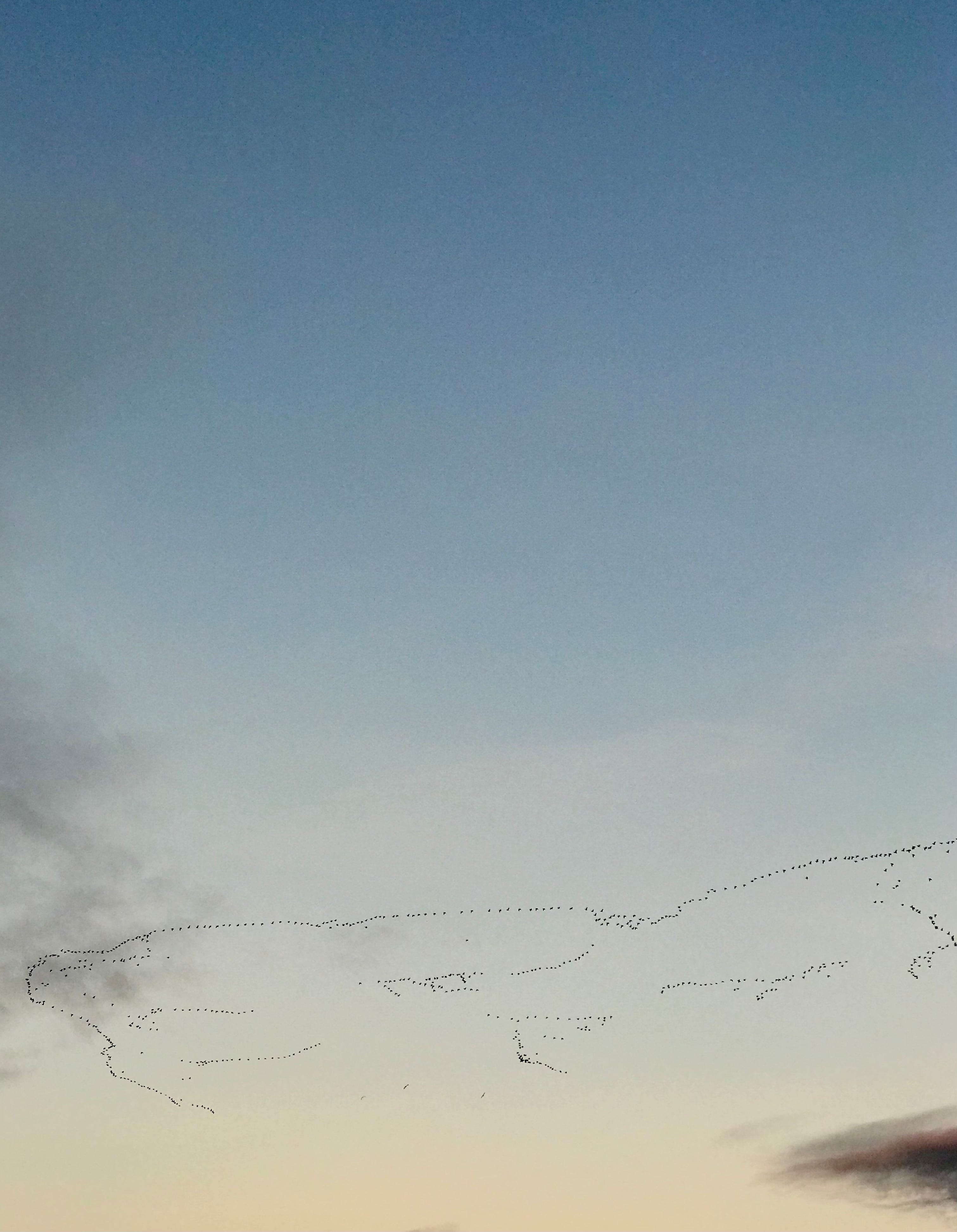 Every autumn I find myself rooted, chin tilted up, eyes shiny each time a skein flies over. At the first sound of ‘wink-wink’, I’m out of my seat and opening the back door, scanning the skies to spot them. There is a hankering to go with them, to soar away from the everyday human concerns, reach wings through blustery air and stretch neck towards water. No matter how many times I try to describe the sound of thousands of migrating geese arriving for autumn, the way it resonates through my body, what it makes me feel – I fail.